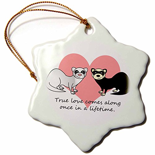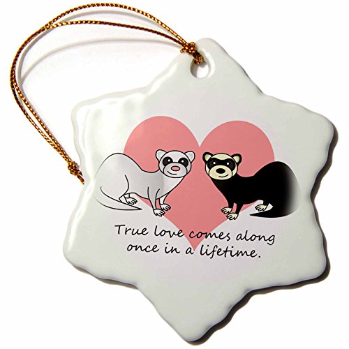 3dRose True Love Comes Along Once in a Lifetime Cute Ferret Love Snowflake Porcelain Ornament, 3-Inch