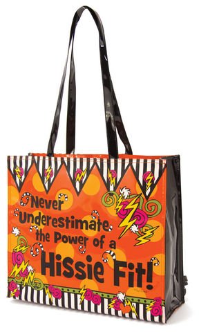 -. EAN : 0703800045409 -. Feature : 14.5 W x 12 H x 4.5 D / 12 strap drop / lined interior, magnetic closure / "Never Underestimate the Power of a Hissie Fit" -. Label : Brownlow Gifts-Suzy Toronto -. Manufacturer : Brownlow Gifts-Suzy Toronto -. ProductGroup : Kitchen -. ProductTypeName : KITCHEN -. Publisher : Brownlow Gifts-Suzy Toronto -. Studio : Brownlow Gifts-Suzy Toronto -. Title : Suzy Toronto Hissie Fit Tote Bag -. UPC : 703800045409