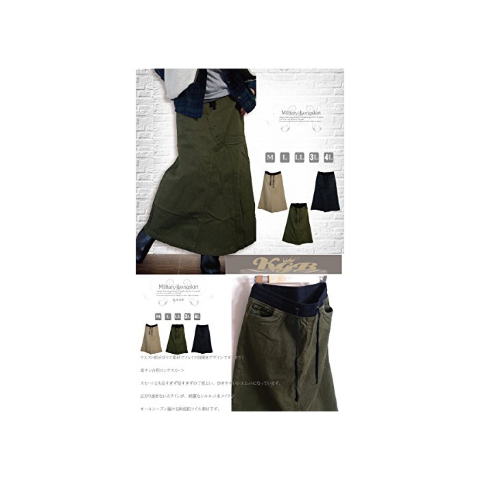 원본상품명: (ケジビ)K.G.B ロングスカト マキシ レディス ツイル ミリタリ 無地 Aライン 台形 大人 M/L/LL/3L/4L