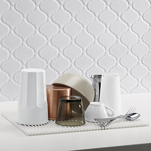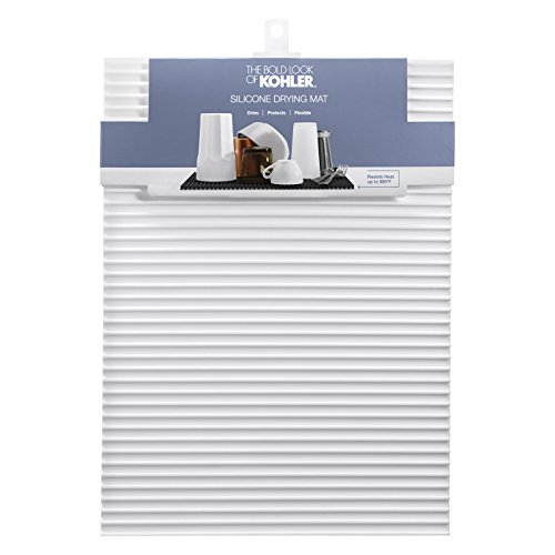 KOHLER Storable Large Silicone Dish Drying Mat 11" x 15", Heat Resistant up to 500 Degrees F, White