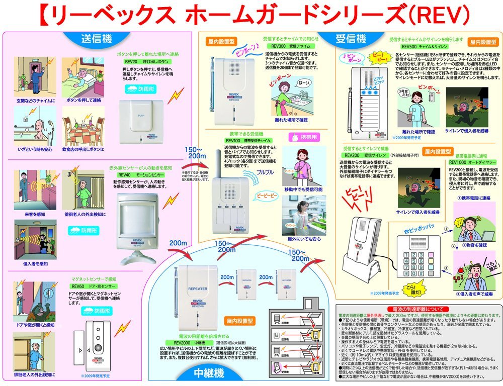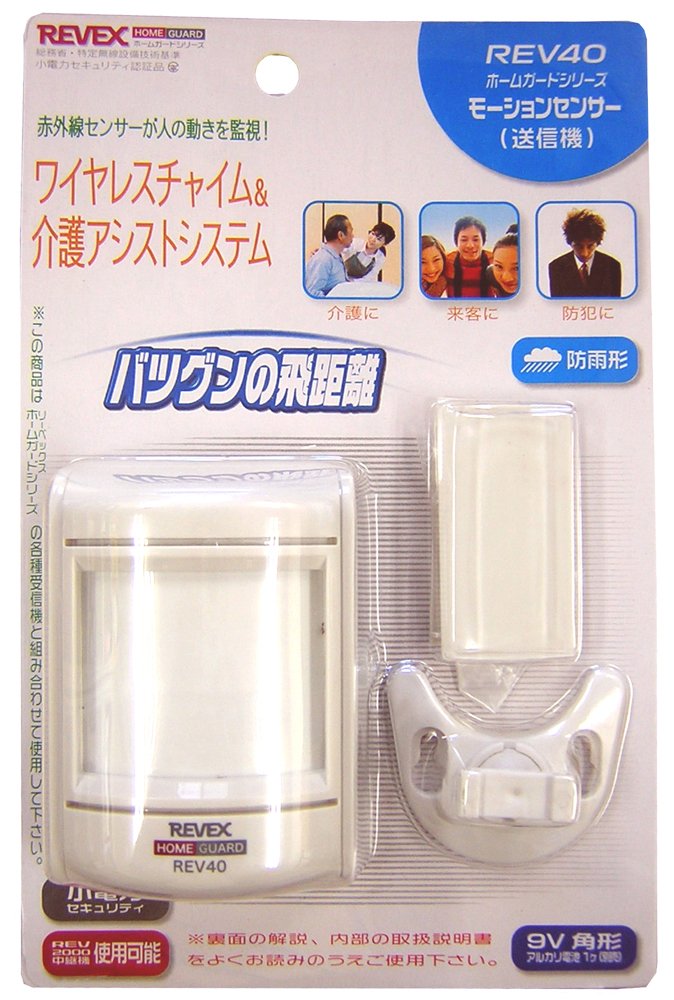 ● Receiver compatible with REV100, REV300, REV500 etc. ● For visitors and intruders, assistance for nursing care (detection of going out for wandering old people), etc. ● Because it is rainproof, it can be used outdoors or in a bathroom ● Because it is a digital ID system