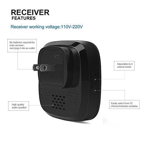4 level volume adjustable with 52 charming melodies available, you will never be bored with terrible doorbell ringing again , both perfect to look after the young and the old. This can be specially used as professional pager for the old. When an old man meets with an emergency,he just needs to slightly press the transmitter button, his family can receive his signal for help