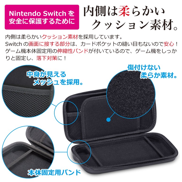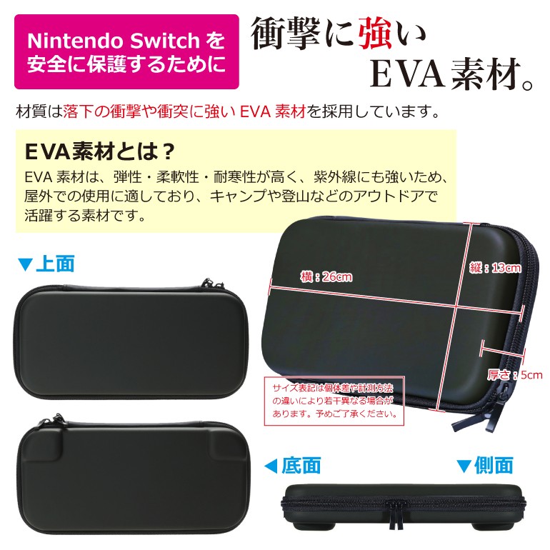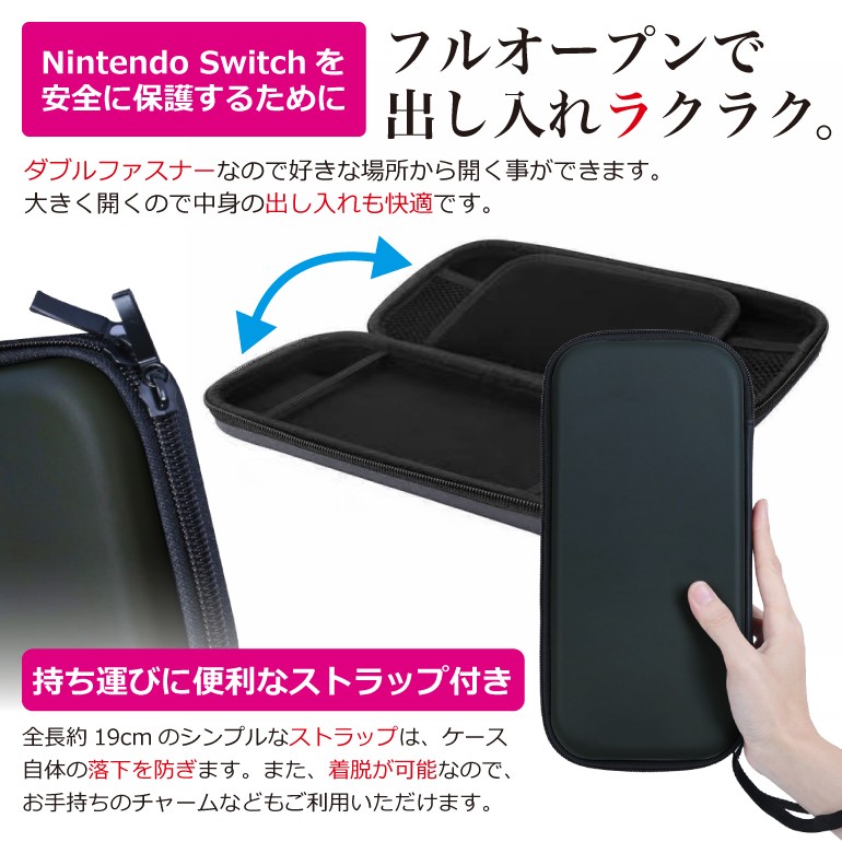大切なNintendo Switchの収納ケース 耐久性に優れた高品質なEVA素材を採用し、汚れ、水、衝撃や擦り傷を防止でき、大切なNintendo Switch保護をいたします。 持ち運びに便利、自宅・通勤・出張・旅行時の保管・収納に実用的なバッグです。Nintendo Switch 専用ケース 収納ケース 衝撃に強いEVA素材を使用しております。ゲームカード8枚収納可能ストラップ付き・重量約187g  MadeinChina撮影・ディスプレイ等の関係で、実物と多少色など異なる場合もございます。低価格で品物を提供出来る様に簡易包装となっております。画像の端末本体は同梱されません。メール便(クリックポスト)での発送となります。代金引換不可