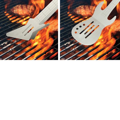 BBQ Tool Set includes ONE Each Stainless Steel Guitar-shaped Spatula and Tongs