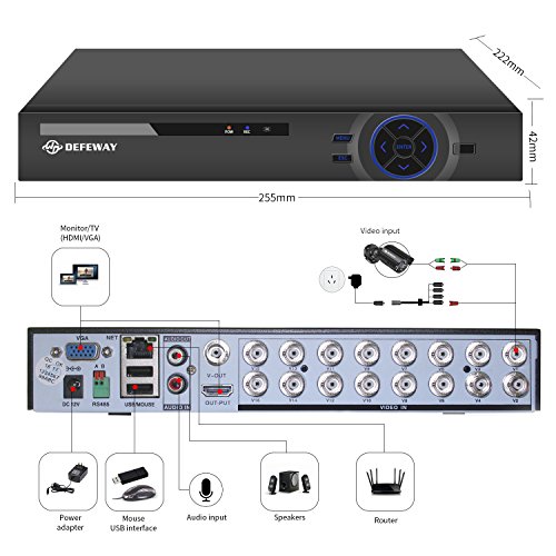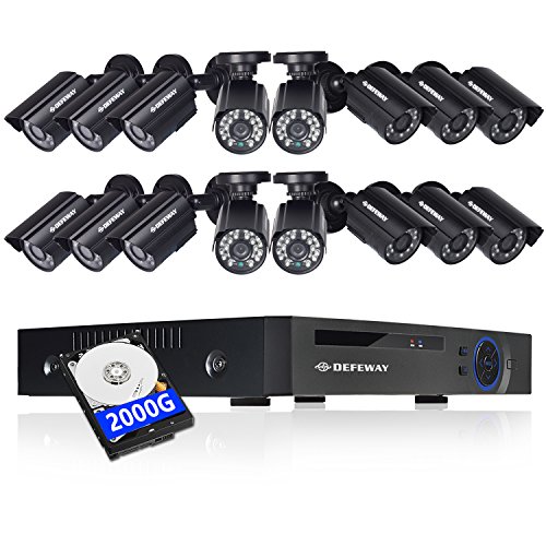 DEFEWAY 16ch Video Security System with 16Channel 1080N DVR, 16 Weatherproof 720P HD Cameras, Indoor & Outdoor, 100ft Night Vision, Motion Detection, 2TB HDD