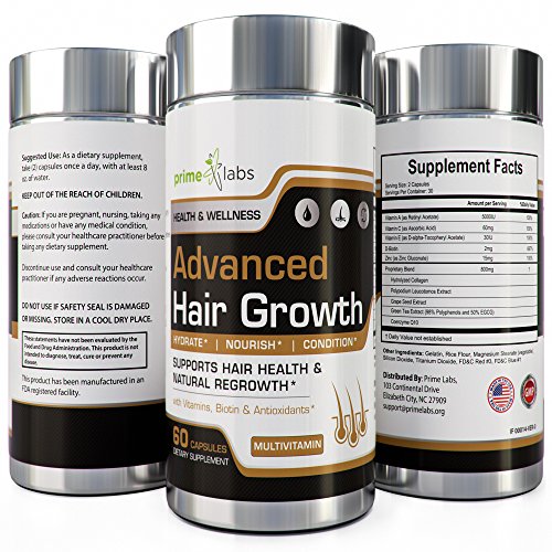 -. Title : Advanced Hair Growth Formula for Healthier and Stronger Hair, Skin, & Nails with Vitamins A, C, & E, and Biotin - 60 Capsules by P.R.Ime Labs