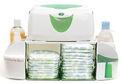 - Feature : A table top organizer that holds diapers, wipes, ointments and more / Flat top holds baby wipe dispenser or wipe warmer / Removable side bins organize lotions, ointments and more / 12 scented diaper bags included / Easy access compartment holds over 20 diapers