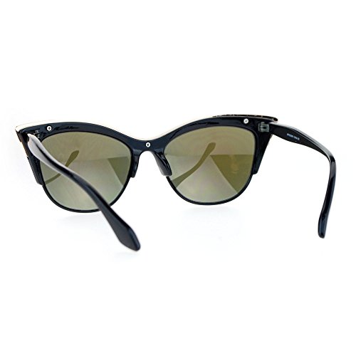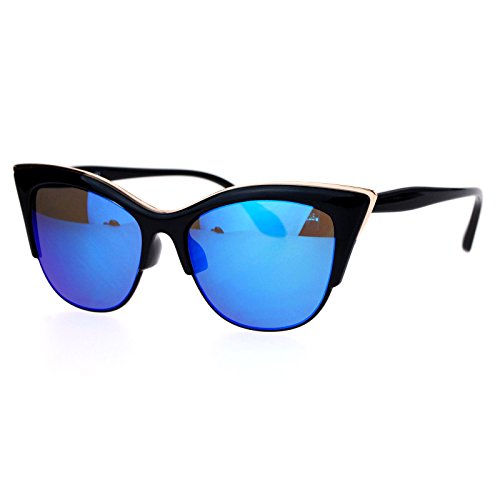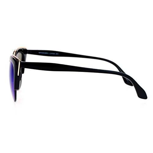 SA106 Womens High Point Squared Half Rim Look Cat Eye Sunglasses Black Blue