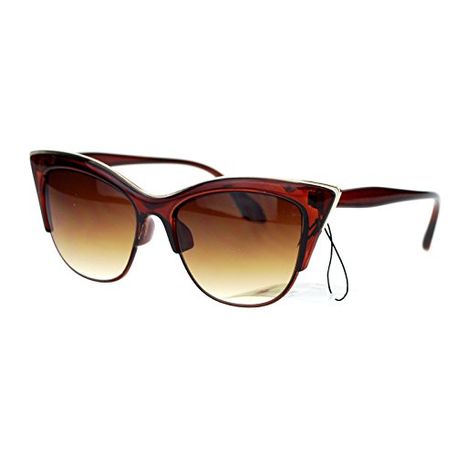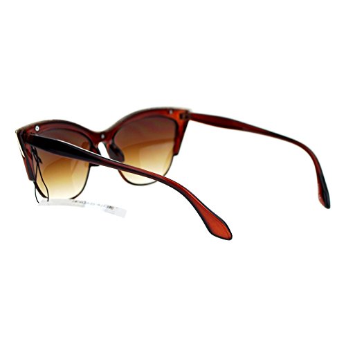 SA106¨ Womens High Point Squared Half Rim Look Cat Eye Sunglasses Brown