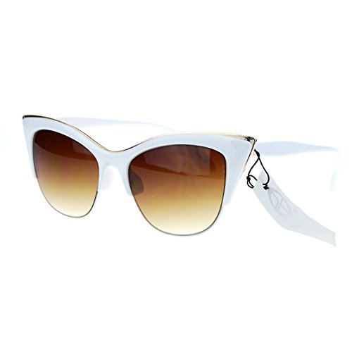 SA106¨ Womens High Point Squared Half Rim Look Cat Eye Sunglasses White