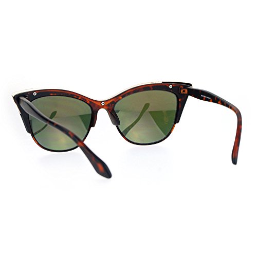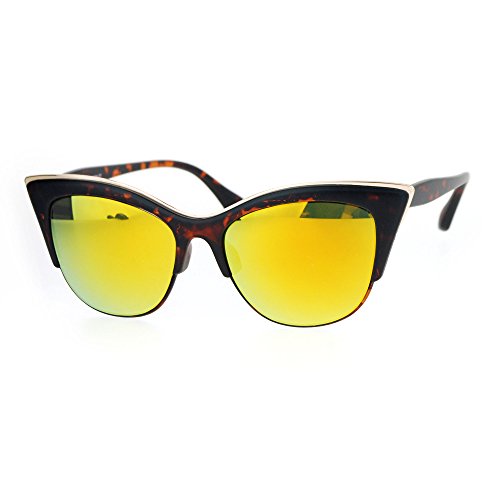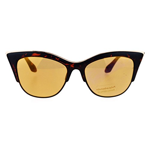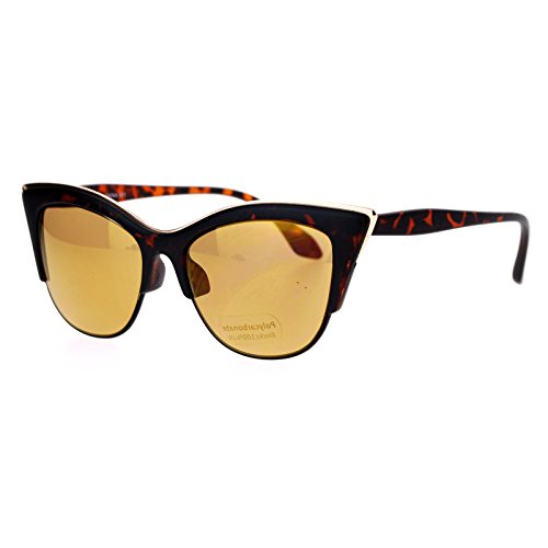 SA106 Womens High Point Squared Half Rim Look Cat Eye Sunglasses Tortoise Gold