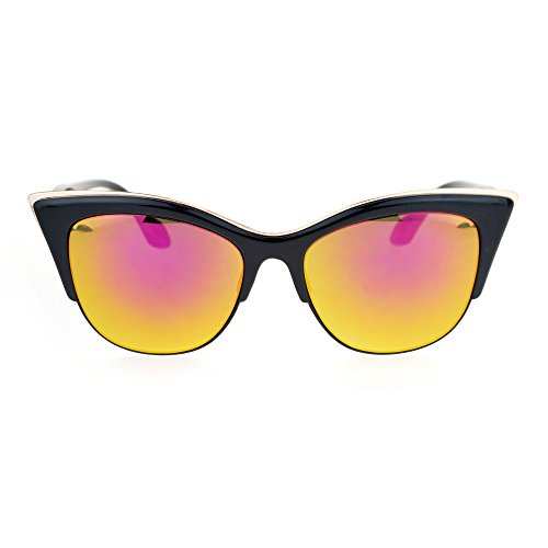 SA106 Womens High Point Squared Half Rim Look Cat Eye Sunglasses Black Fuchsia