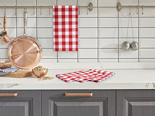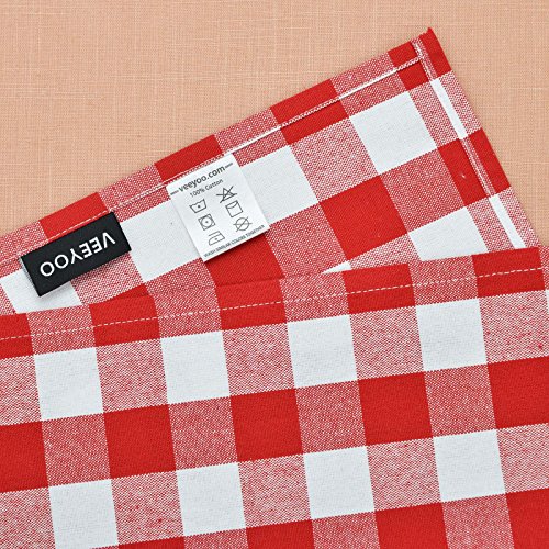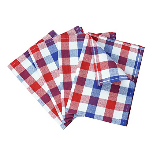 VEEYOO 14 x 20 inch (36 x 51 cm) 100% Cotton Kitchen Dish Towel Set of 4 Gingham Check Tea Cloth, Machine Washable, Ultra Absorbent, Red, Navy & White