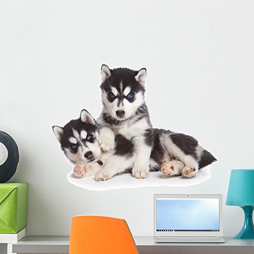 Wallmonkeys Siberian Husky Puppy on White Peel and Stick Wall Decals WM134838 (24 in W x 16 in H)