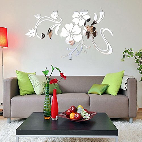 -. Title : Ikevan 1Set Acrylic Art 3D Mirror Flower Wall Stickers DIY Home Wall Room Decals Decor Sofa TV Setting Wall Removable Wall Stickers 78X60cm
