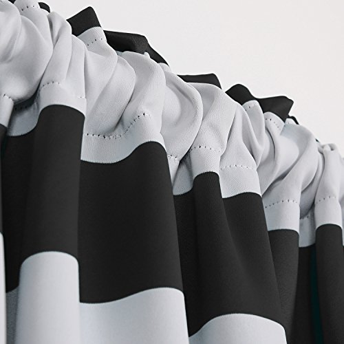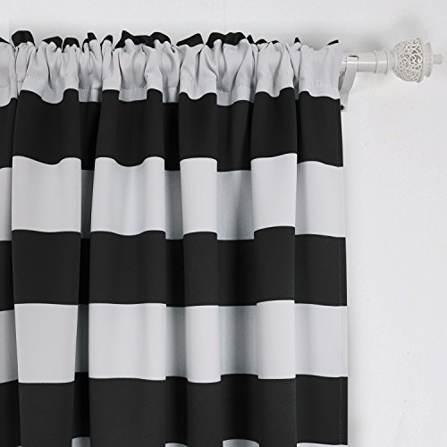 -. Binding : Kitchen -. Brand : Deconovo -. Feature : Made by 100% polyester. Durable and quality. / The rod pocket curtains can be washed in machine and dried. / Two panels per package. 2 matching tie back included. / The distance between stripe and stripe is about 7.8 inches/ 20cm, The modern design of wide wave stripes makes your room more sweet and special. / The backing is similar to the front. They would help insulate against heat and cold. Also,they will prevents the room from noise, ultraviolet damage and dust, too. -. IsAutographed : 0 -. Label : Deconovo -. Manufacturer : Deconovo -. MPN : CT1507D-Stripe -. PartNumber : CT1507D-Stripe -. ProductGroup : Home -. ProductTypeName : HOME -. Publisher : Deconovo -. Studio : Deconovo -. Title : Deconovo Nautical Blackout Curtains Rod Pocket Room Darkening Curtains for Living Room with Wave Stripes Pattern