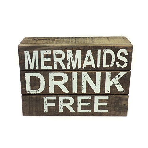 7" Mermaids Drink Free Wood Box Sign Coastal Beach Wall Decor