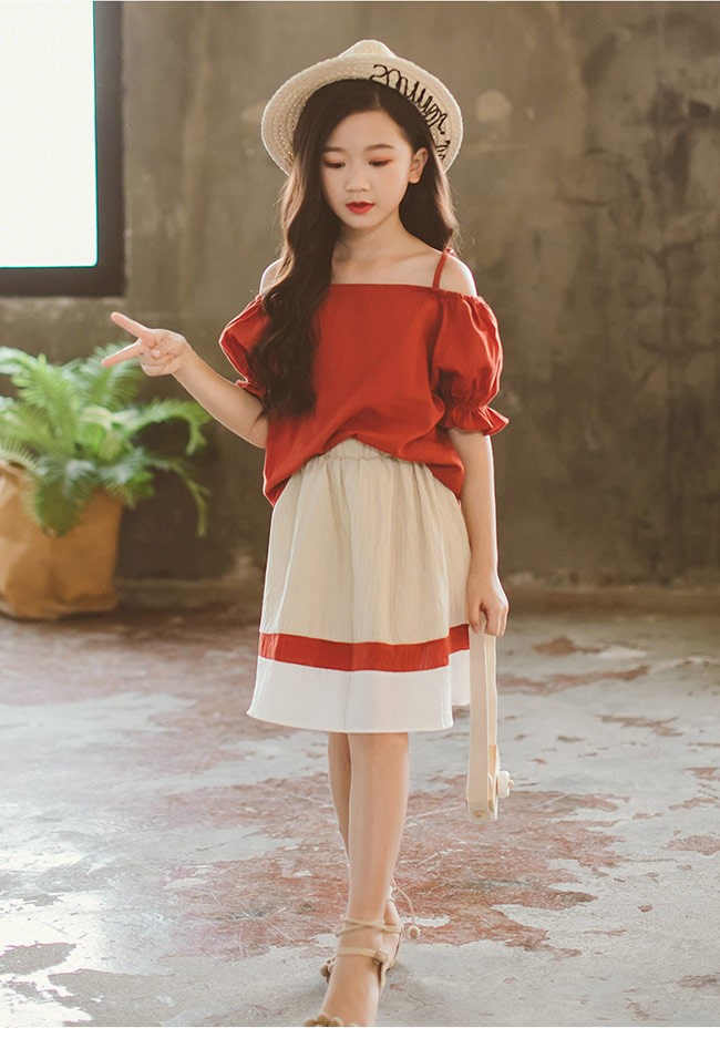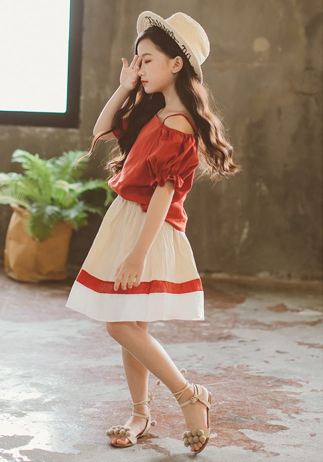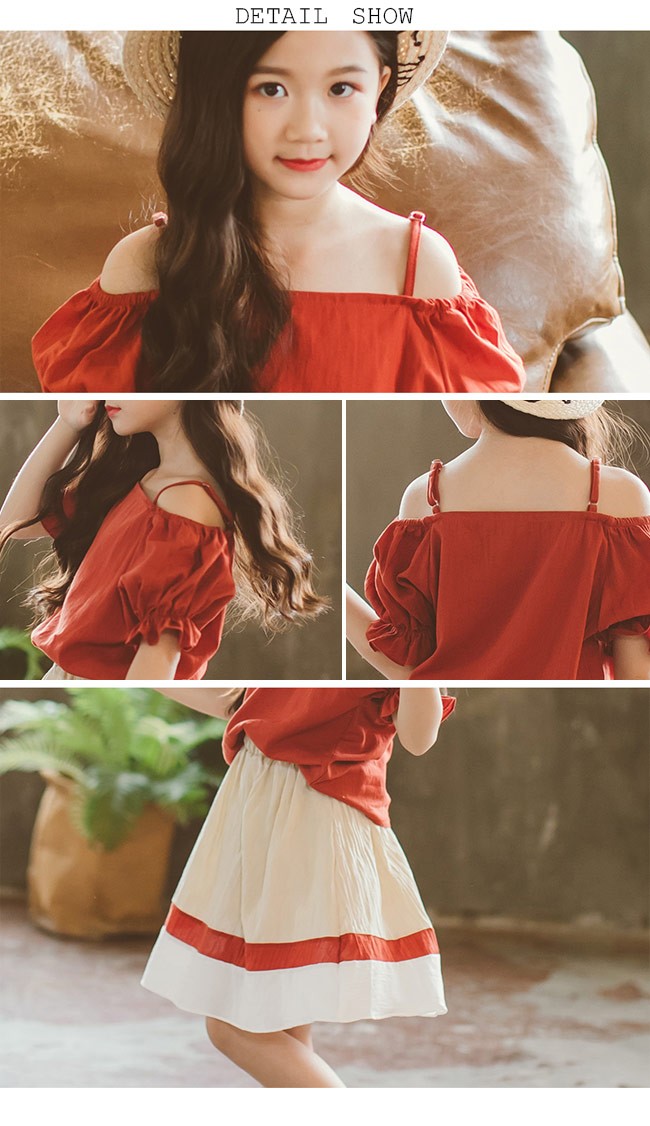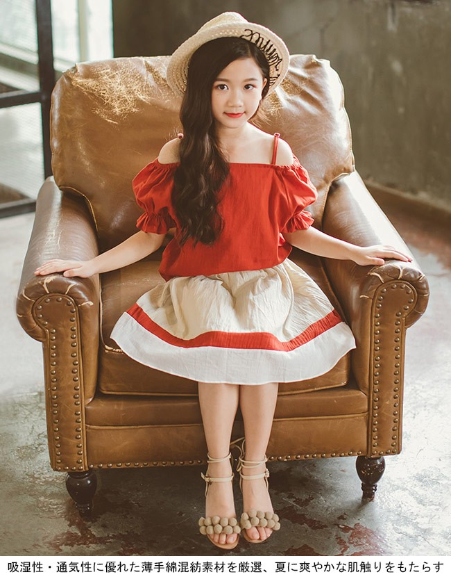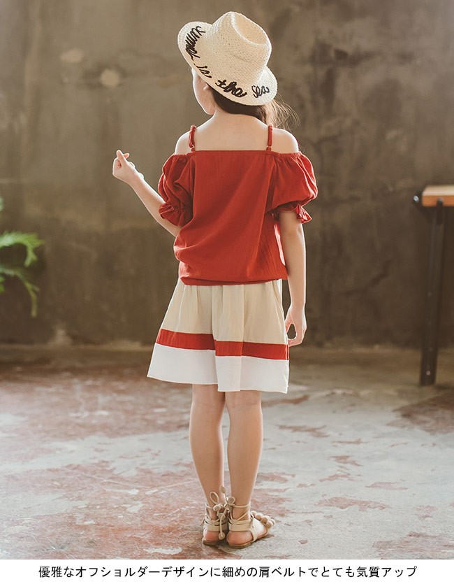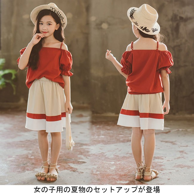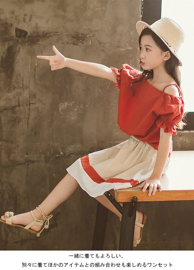 子供服 2点セット オフショルダーブラウス ゆったり 膝丈スカート 女の子 セットアップ 夏物 肩出しトップス Aラインスカート キッズ服女の子用の夏物のセットアップが登場ゆったりとしたシルエットの半袖トップスに膝丈スカートの2点セットで季節感たっぷり吸湿性・通気性に優れた薄手綿混紡素材を厳選、夏に爽やかな肌触りをもたらす優雅なオフショルダーデザインに細めの肩ベルトでとても気質アップ一緒に着てもよろしい、別々に着てほかのアイテムとの組み合わせも楽しめるワンセットカラー:写真色素材 綿混紡サイズ(cm) 100 110 120 130 140 150100 トップス 着丈32 バスト75 スカート 総丈34110 トップス 着丈35 バスト78 スカート 総丈37120 トップス 着丈38 バスト82 スカート 総丈40130 トップス 着丈41 バスト86 スカート 総丈43140 トップス 着丈44 バスト89 スカート 総丈46150 トップス 着丈46 バスト92 スカート 総丈49ご注意:※サイズは平置きサイズです。素人採寸ですので、若干の誤差がございます、ご了承ください。