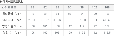 | 사이즈 조견표: