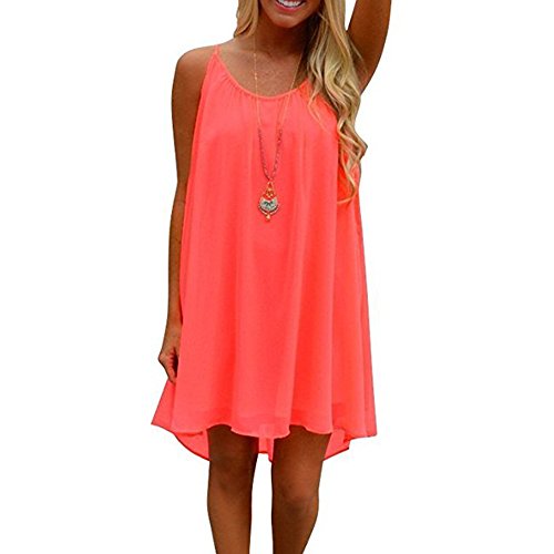 The MUMUBREAL vibrant color chiffon dress is made of chiffon and polyester, the material is soft, lightweight and comfortable to wear, it is cool in summer with it. Vibrant bright color including coral, rose red, orange, green is for beach wear, casual wear and night club party.