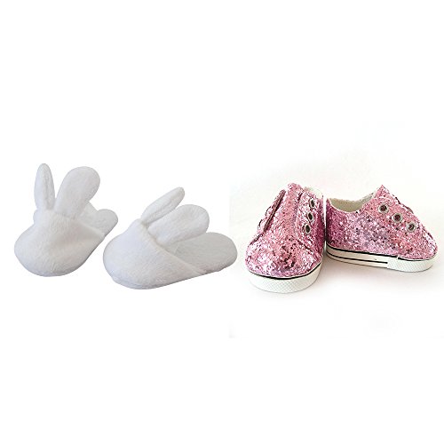 (Golden Star®)/Dolls/Clothing Shoes/DIRECT FROM USA/18 Inch Doll Shoe Set,Including 1 Pair of Easter White Bunny Slippers 1 Pair of Pink Sequined...