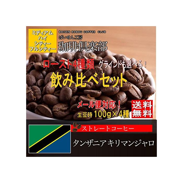 원본상품명: ばいせん工房 部 【ロストみ比べのセット】『タンザニア キリマンジャロ』100g×4種 計400g ロスト4段階:豆のまま