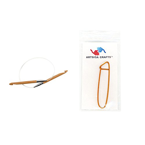 - Bundle includes 1 ChiaoGoo Circular Crochet Hook 16-inch (41cm) Bamboo Dark Patina; Size US J (6mm) with 1 Artsiga Crafts Stitch Holder 5016-J