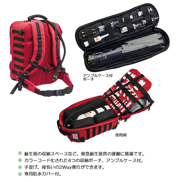 ●蘇生器の収納スペースなど、救急蘇生器具の運搬に最適です。
