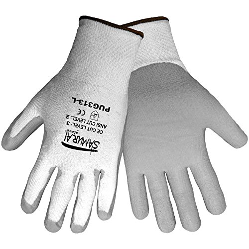 Studio : Global Glove Publisher : Global Glove Binding : Misc. Product Description Global Glove the Samurai is polyurethane on Tuffalene brand HDPE (high density polyethylene). American ASTM F-1790 level 2 cut resistance with 505 gram results. This glove combines the absolute best in comfort and dexterity in a cut resistant glove. Samurai gray polyurethane coated/white stretch broken Tuffalene HDPE. Our lightest weight Samurai. Incredible comfort and dexterity. Stretch broken spun gives better comfort and the coolness cotton. Excellent grip helps prevent slip related accidents. Applications: excellent industrial protection in a wide range of mechanical and cut hazards. Excellent tactile dexterity and sensitivity. Cut resistant HDPE shell. Polyurethane coating provides superior dry grip. Tuffalene liner provides excellent cut resistance and dexterity. Gray hides soil, extending glove wear life. Ergonomically designed forms provide naturally curved, relaxed fit to reduce hand fatigue. Exterior finish: smooth. Size: medium. 0
