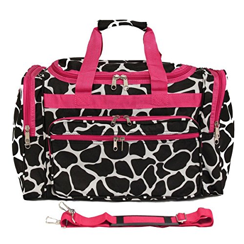 -. Binding : Apparel -. Brand : World Traveler -. Department : unisex-adult -. Feature : 600d polyester / Two front zipper pockets and 2 side pockets / Silver pewter hardware, detachable and adjustable shoulder strap / Dimensions: 22 inch l x 11 inch w x 12 inch h - 2.4 lb. / 22x10x11 -. Label : World Traveler -. Manufacturer : World Traveler -. Model : 81T22-603 -. PackageQuantity : 1 -. ProductGroup : Apparel -. ProductTypeName : LAGE -. Publisher : World Traveler -. Size : One Size -. Studio : World Traveler -. Title : World Traveler Giraffe 22-Inch Travel Duffle Bag
