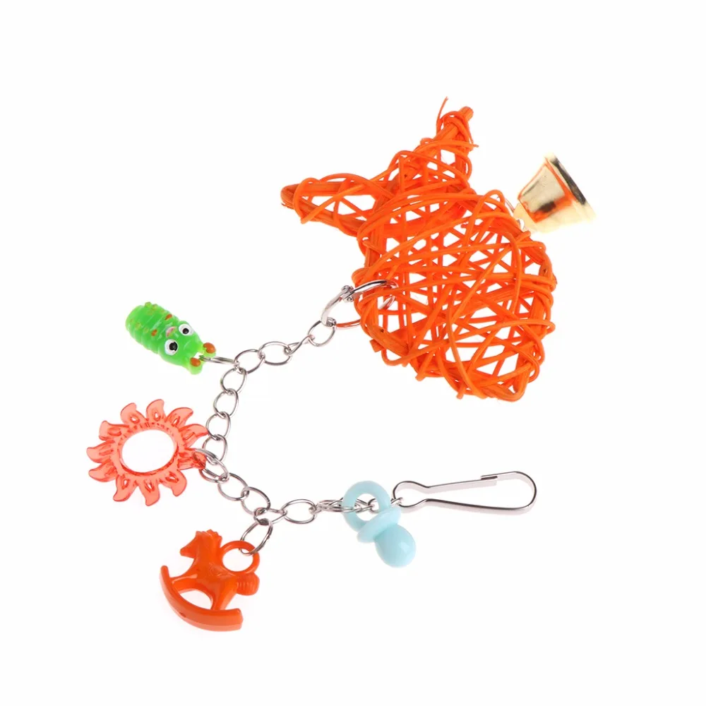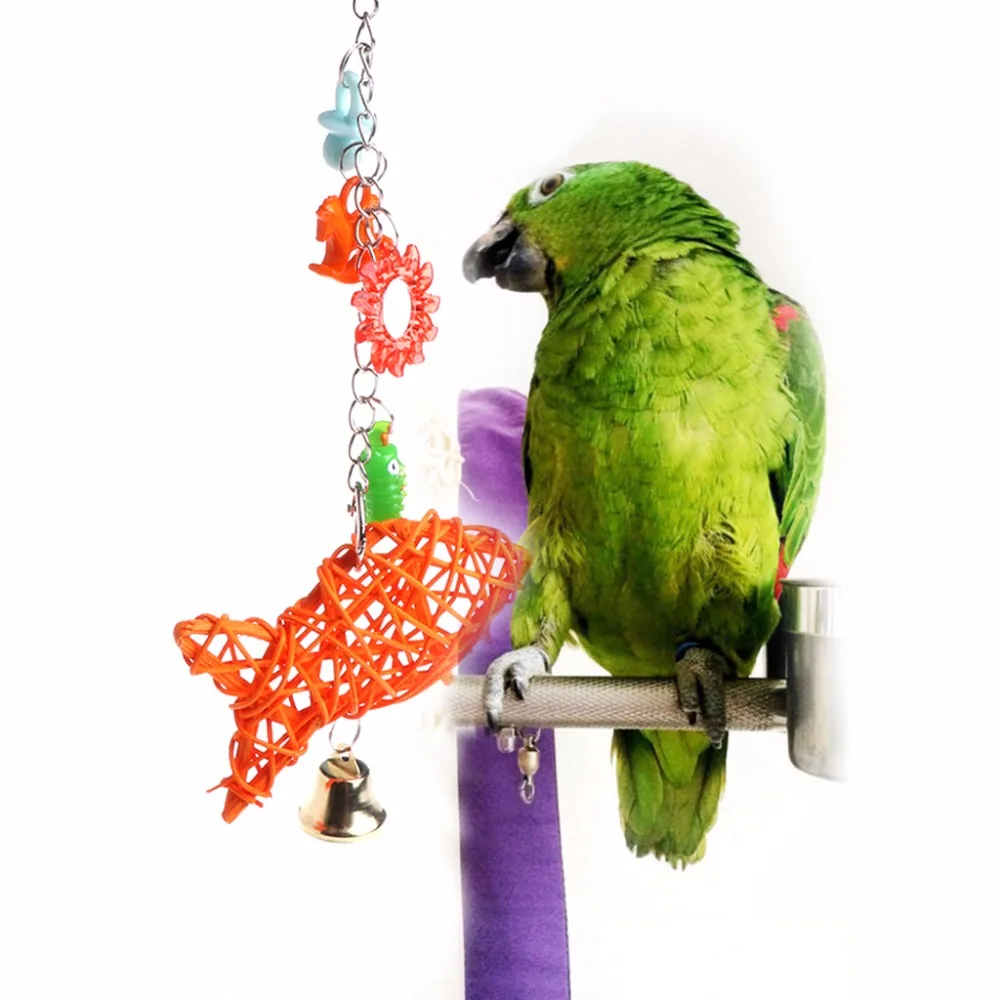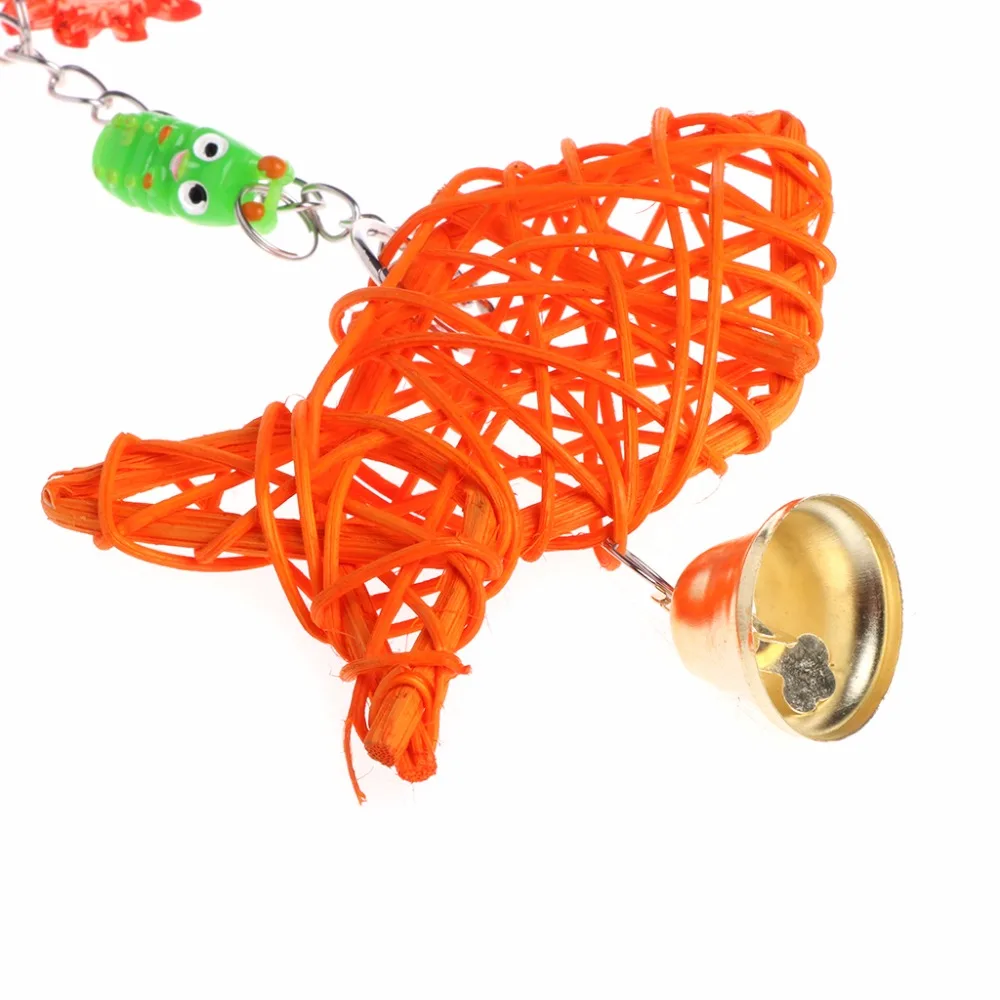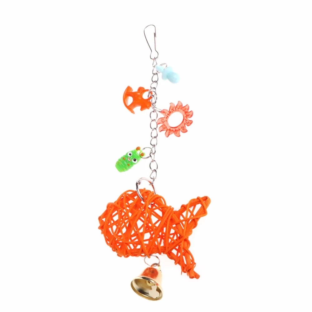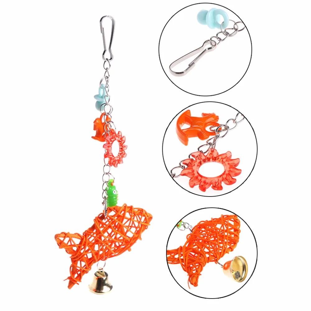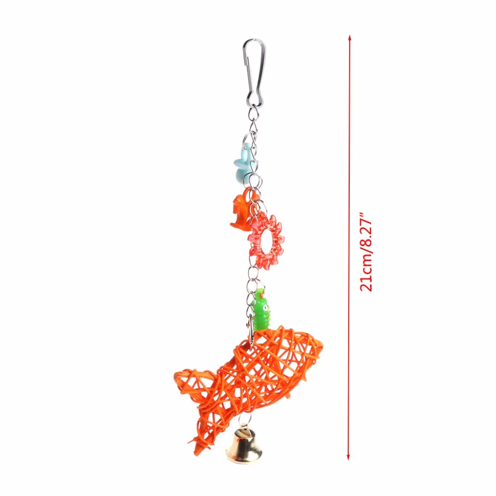 item type:Pet Bird Parrot Cage Hanging Toys Orange Rattan Fish Shape 2S90764