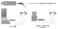 ・ヘッドホンのプラグを付属の専用USB充電器に差してPCなどとUSB接続することで充電可能。