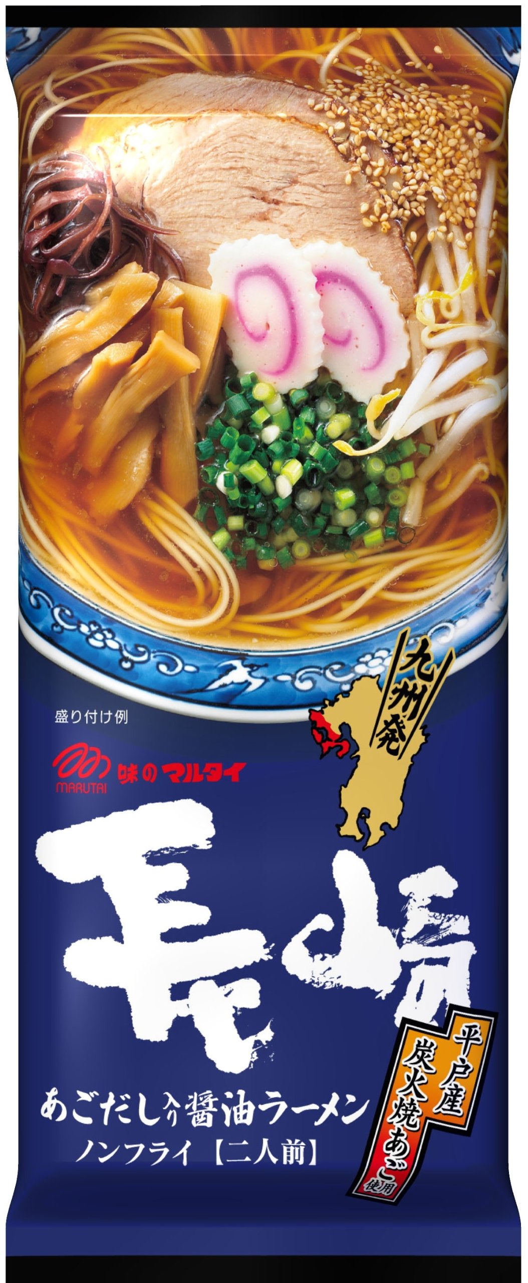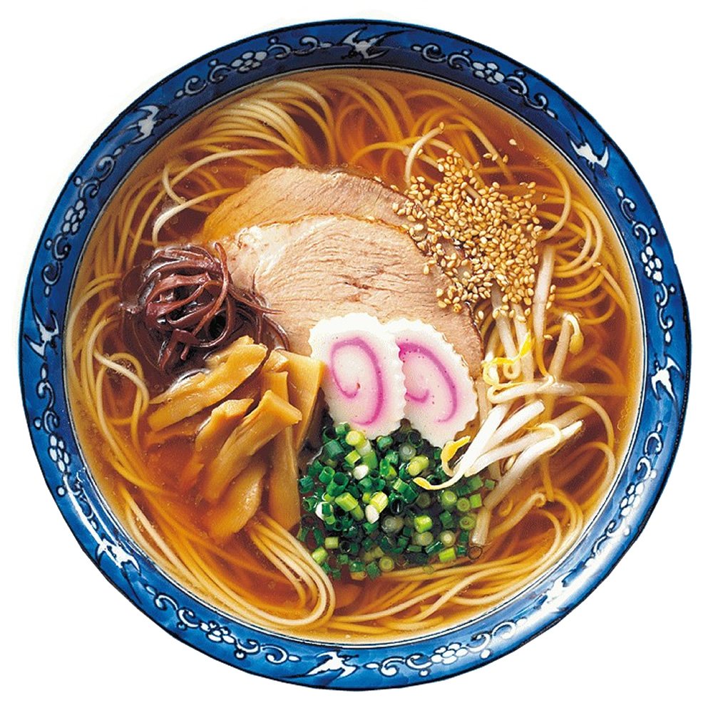 The soup is based on the charcoal-grilled chin of Hirado from Nagasaki prefecture (flying fish), made with addition of chicken extract, pig extract, simmered fish paste, kelp, scallops, bonito flakes, tuna etc, based on the sea's rich taste of rich taste of soy sauce