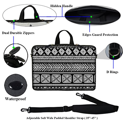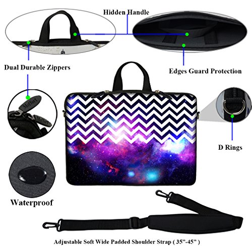 -. Binding : Personal Computers -. Brand : Meffort Inc -. Feature : Hydrophobic (water resistance) neoprene material, w. reinforced dual zipper to secure your device / High quality printing on both side of the bag with laptop edge guard / Fits laptop size up to 17.3 inch, Fits laptop dimension up to: 16.8 inch (427mm) x 12.5 inch (317mm) / Item can be use as shoulder bag w. strap in use or can be use as carrying bag (Hidden Handle) or Sleeve / Note: zipper will not close fully when hidden handle is in use, but it doesn't affect functionality -. Label : Meffort Inc -. Manufacturer : Meffort Inc -. MPN : ZStrap_3 -. PartNumber : ZStrap_3 -. ProductGroup : PC Accessory -. ProductTypeName : CARRYING_CASE_OR_BAG -. Publisher : Meffort Inc -. Studio : Meffort Inc -. Title : Meffort Inc 17 17.3 inch Neoprene Laptop Sleeve Bag Carrying Case with Hidden Handle and Adjustable Shoulder Strap