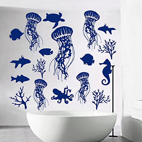 -. Title : Sea Shell Art Jellyfish Wall Decals Vinyl Decal Bathroom Stickers Shower Baby Nautical Nursery Bedroom Home Decor Art Murals Ah101