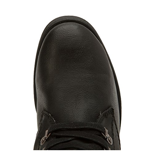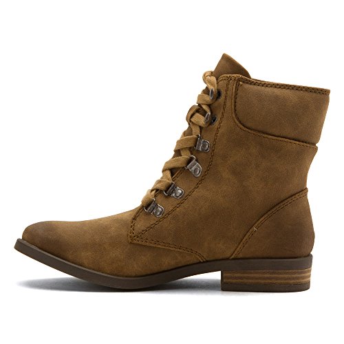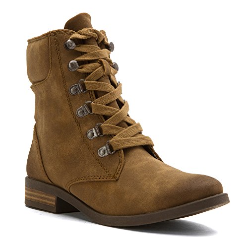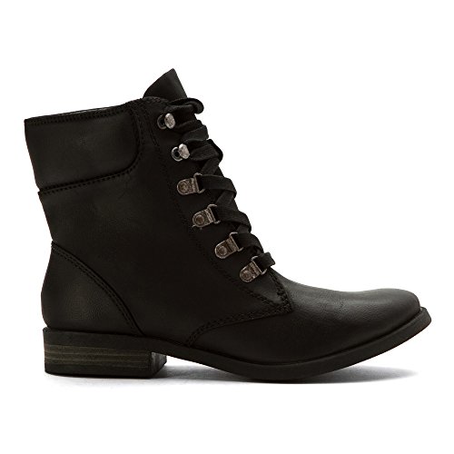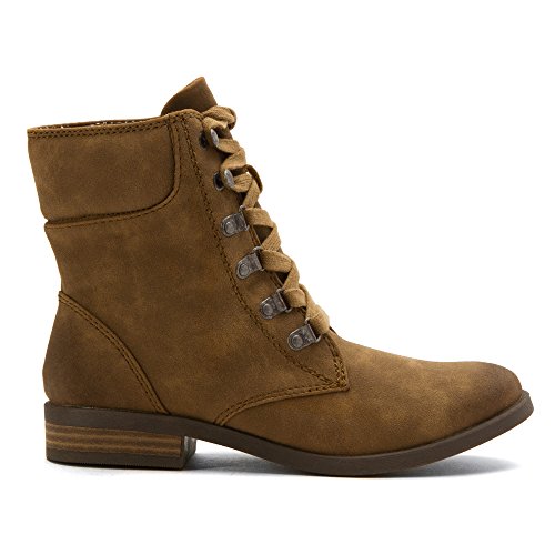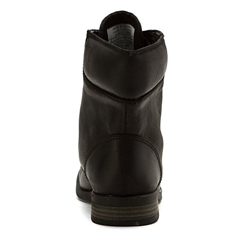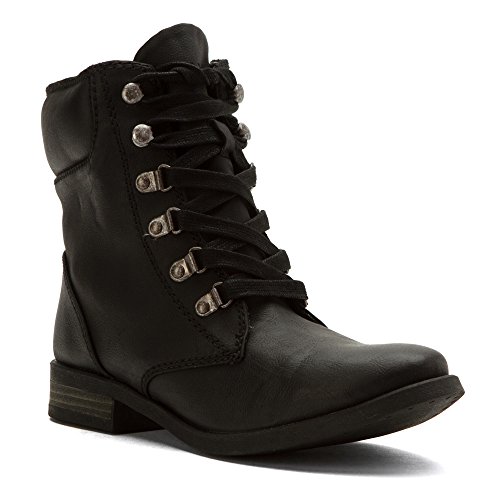 Product DescriptionMoto boot with padded collar detail, soft cotton laces with metal eyelets and hooks, canvas lined shaft and footbed, and flexible tpr unit bottom.0