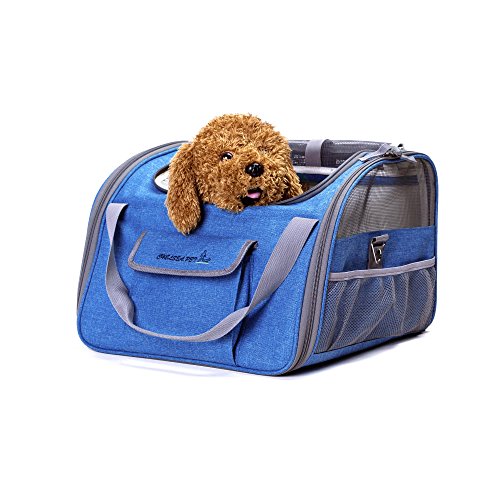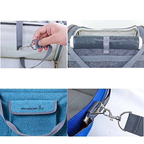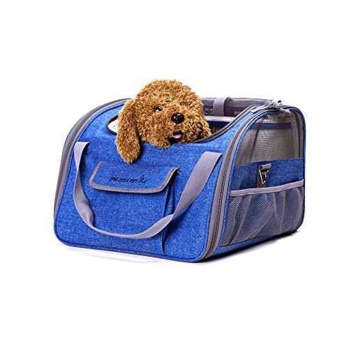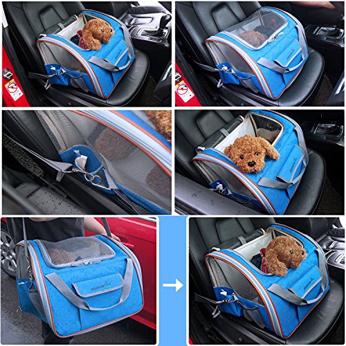 Pet Life Ultra-Lock Collapsible Safety Travel Wire Folding Pet Car Seat Carrier Now you and your pet can achieve maximum comfort while traveling This 2 in 1 carrier perfectly performs as pet bag and car seat . 600 Denier Nylon shell extra softly padded. High-quality environmentally material, cationic linen fabric with thermostat, anti-allergy, anti-static, antibacterial and other effects. due to the hygroscopicity of linen, can receive its own weight of 20 times water; Interior tether is adjustable to keep your pet secure. Loops at back allows safety belt to go through and fix. Adjustable strap attaches to headrest or play as shoulder strap while walking. Handles are available for carrying. A leash inside, which can contact the dog collar, make your love pet more secure, do not have to worry about love pet escape Zipper safety lock design, to prevent lovely pet escape from your pet carrier, more safety and durable. Zipper top/side for easy entry . Mesh top entry and side windows ensure air ventilation. Front and side pockets hold treat,toy,etc. Strap zinc alloy buckle: zinc alloy material, more durable Fold flat in seconds, Product Dimensions: S:15"L×12.5"W×9.5"H.Fit pets up to 15 lbs L:16"L×13.5"W×12"H.Fit pets up to 20 lbs