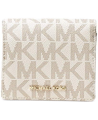 -. Feature : Featured in vanilla / Card wallet case / Snap closure / Allover signature dotted "MK" pattern / Metal logo letters at lower front