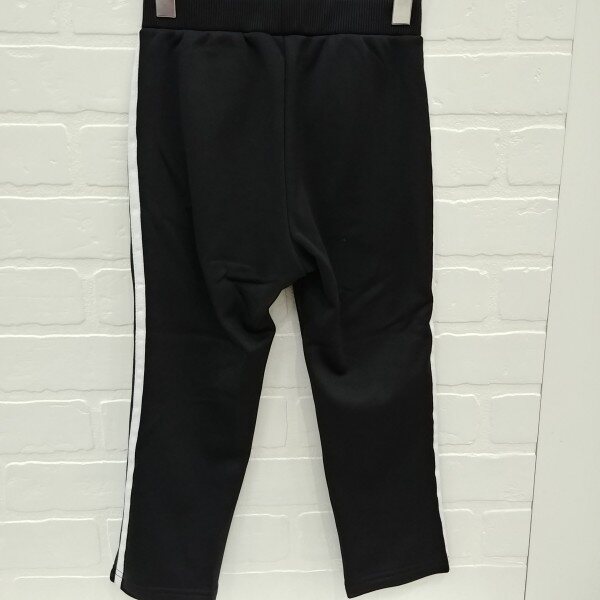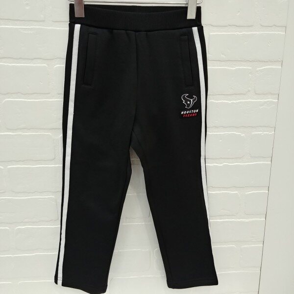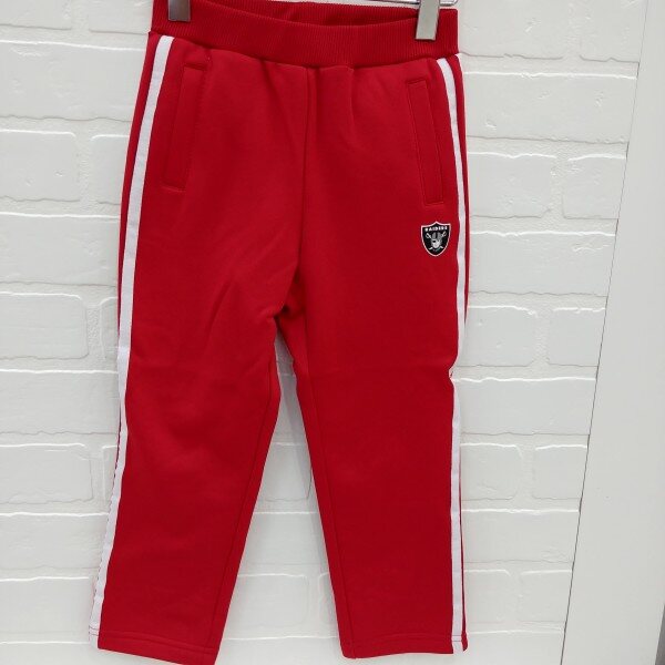 양쪽에 테잎 두줄 포인트를 준 폴리져지 기모 스판 소재의 트레이닝 팬츠, 앞 팀 마크 나염으로 원 포인트를줌.
