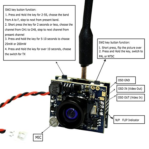 원본상품명: Hobbymate Micro FPVカメラAIO VTX 25?mW / 200mw、切り替え可能NTSC / PAL for RC Racingクアッドコプタ?Drone