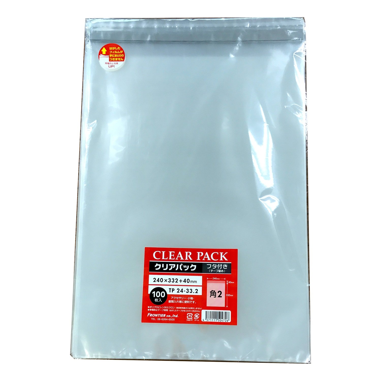 【サイズ】角2 ヨコ24×タテ33.2cm、フラップ部4cm 【厚さ】0.03m 【入数】100枚 【材質】ポリプロピレン