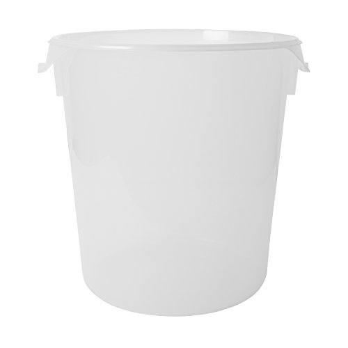 -. Feature : Round food storage containers are economical, durable, and easy to use. / Stackable in use; nestable for compact storage. Reinforced rim adds strength and durability even with full, heavy loads. / User-friendly, easy-grip handles with dishwasher drain hole. Dishwasher-safe at temperatures -20°F/-34°C to 212°F/100°C. / Made of BPA-free, FDA compliant materials; certified to NSF Standard #2. / Available in white polyethylene or semi-clear polypropylene for greater visibility. Made in the USA. / Stackable in use; Nest for compact storage / Reinforced rim for added strength / User-friendly, easy-grip handles with dishwasher drain hole / Temperature range: -20-Dergee F/-34-Dergee C to 212-Dergee F/100-Dergee C. Dishwasher safe. / Certified to NSF Std; and Made of FDA compliant materials