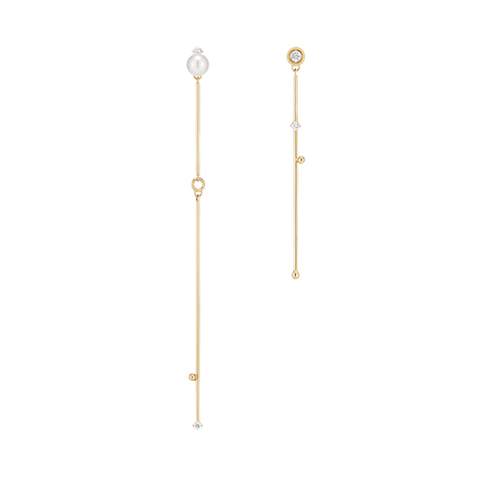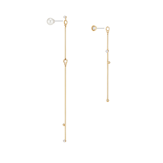 * 두 가지 길이의 스틱형 이어참과 진주와 스톤 두 가지 스타일 포스트 이어링으로 구성된 언밸런스 이어링