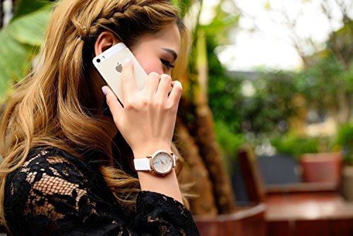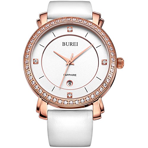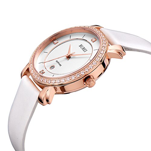 -. Title : BUREI® Women's Elegant Rose Gold Watch with White Leather Band
