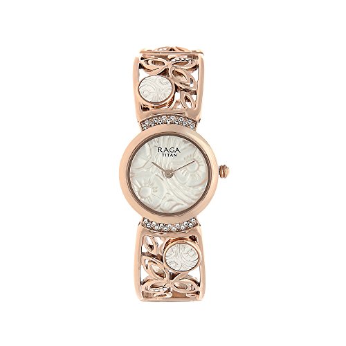 -. Title : Titan Raga Aurora, Swarovski, Mother of Pearl Gold/Silver/Brass Metal Jewellery Design, Bracelet Style, Designer, Quartz Glass, Water Resistant Wrist Watch