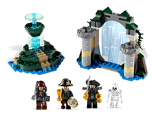 -. Feature : Features Jack Sparrow, Blackbeard and Barbossa with wooden leg minifigures / Set features Fountain of Youth with skeleton figure and waterfall / Reach the sP.R.Ing and receive the gift of eternal life / 128 Pieces