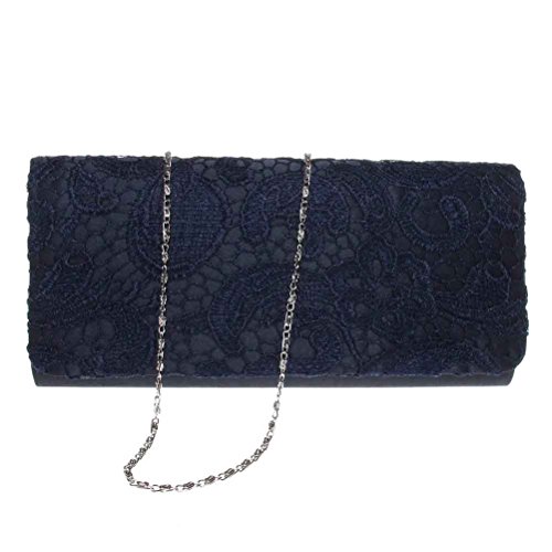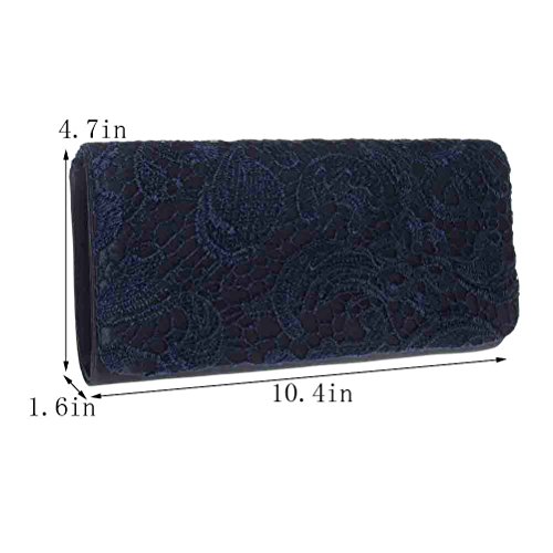"FASHIONROAD" believes every girl deserve one clutch purse fits her well. We devoted ourselves to design chic and high quality bag for every party girl. Join us, get one "FASHIONROAD" clutch purse, be the Queen of the night Features: MATERIAL: Lace CLUTCH SIZE: 10.4 (L) * 4.7 (W)* 1.6 (H) Inch STRAP LENGTH: 46.49 Inch COLOR: White/Rose/Navy Blue/Black INCLUDE: 1 * Clutch Purse Why You Choose Our Clutch Purse < UNIQUE DESIGN & QUALITY GUARANTEE > This clutch purse is made of high quality lace, chic and noble. "FASHIONROAD" is a brand register in US, only sold by "Fashion Road", we guarantee every product quality, you can buy any product manufactured by us without worry < BIG CAPACITY & SAFE CLOSURE > This clutch purse can fit everything you need (cell phone, eyeglasses , coin purse, lipstick, a few bobby pins).Flap with magnetic snap closure, and AVOID YOUR BELONGINGS SLIPING < CARRYING OPTIONS & OCCASIONS > You can hold this clutch purse IN YOUR HAND or you can also use it as a SHOULDER BAG or CROSS BODY BAG with the chains coming with the bag. Perfect for wedding, party, prom, just get this clutch purse to have a wonderful night About us "FASHIONROAD" is a US regestered brand, we are a company which is always committed to offer you chic and high quality product. We love our customer, if you have any question, we will always be there trying our best to address any issue for you. Do not hesitate add our product to your cart, our product will never let you downFeature