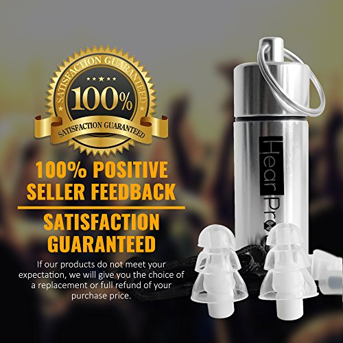 -. Feature : #1 HEARING PROTECTION, SAFEGUARD YOUR EAR against loud sounds or noises that can leave a lasting damage to your hearing like tinnitus & noise induced hearing loss / 100% POSITIVE SELLER FEEDBACK, SATISFACTION GUARANTEED, beware of cheaper generic earplugs that might be lacking in efficacy, trust our 500+ positive reviews and counting / PROFESSIONALLY RETAIN MUSIC, VOICE & CONVERSATION volume through 2 unique sets of earplugs with variable protection attenuation filters that do not muffle the sound like foam earplugs / PERFECTLY FITS THE EAR CANAL with precise triple flange design and cone shaped earplugs tip to fit a range of ear sizes and to ensure a great and lasting seal for your specific needs / NATURAL SOFT SILICONE MATERIAL THAT IS HYPOALLERGENIC & NON-TOXIC for better comfort and prolong usage, does not cause itch or allergic reactions like other plastic or PVC materials