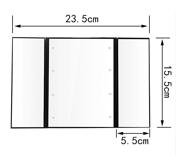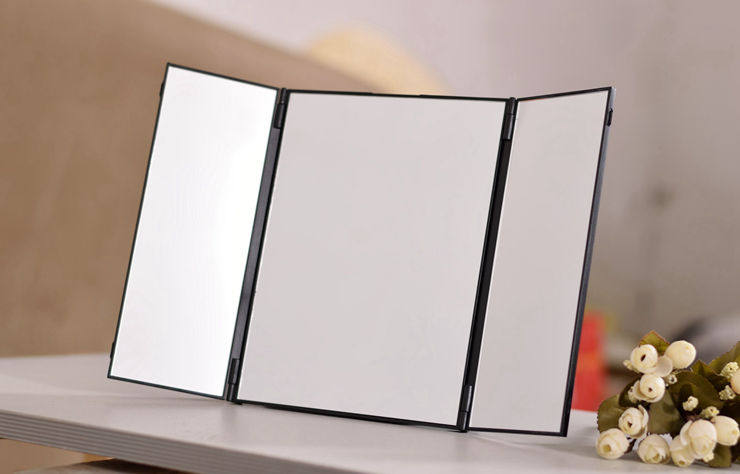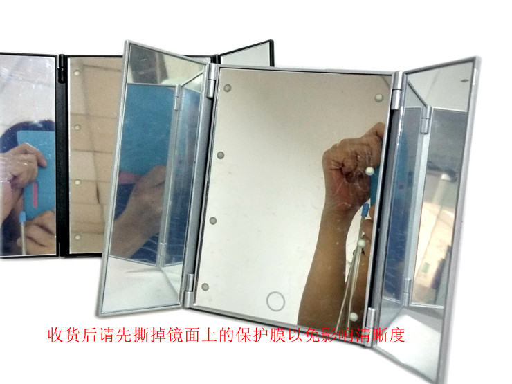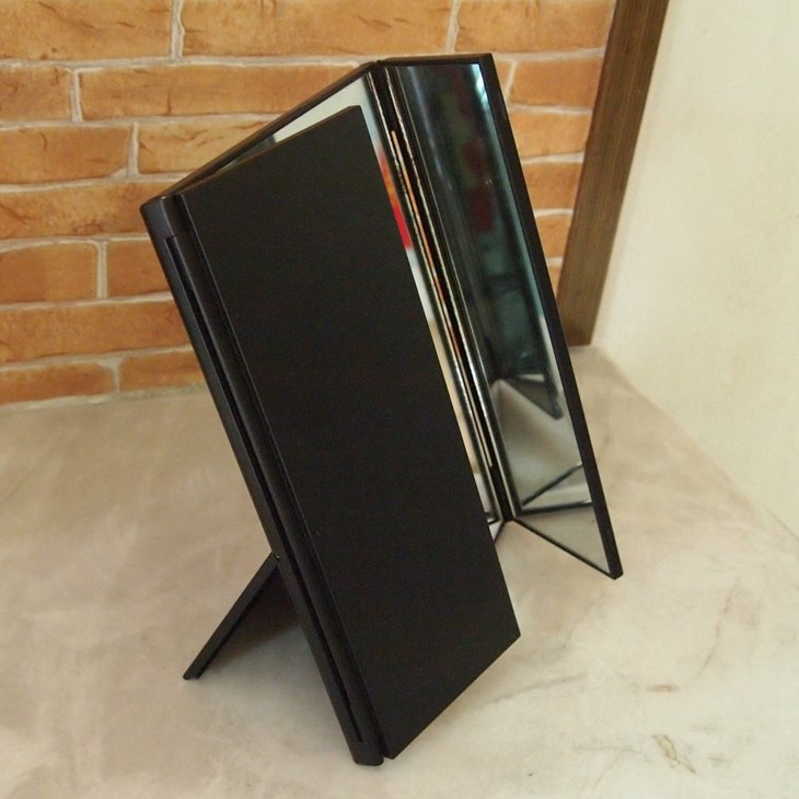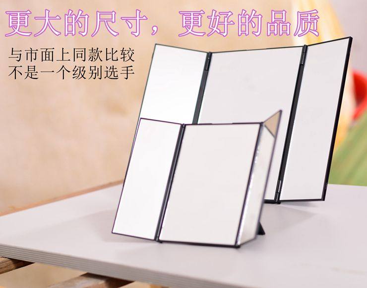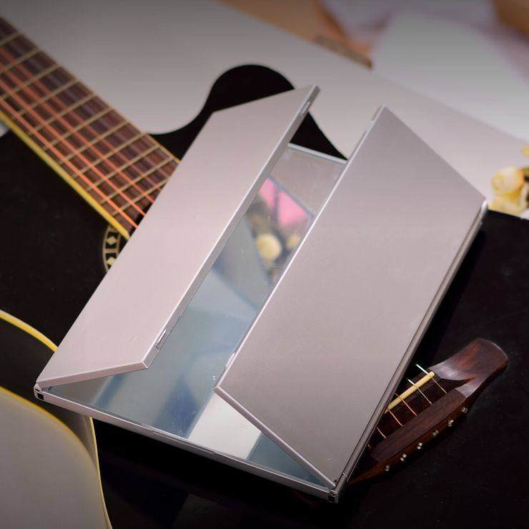 此款镜子折叠后的外观如iPad差不多,而展开后足有15寸笔记本电脑显示屏那么大,配以进口高清镜面,立刻体验到高大上。镜子做工精湛,用料符合日本标准,整体非常有质感!镜子双开门可以打开关上,镜面大又清晰,三面一次看清,非常方便!可折叠的设计,更方便收纳与携带!
