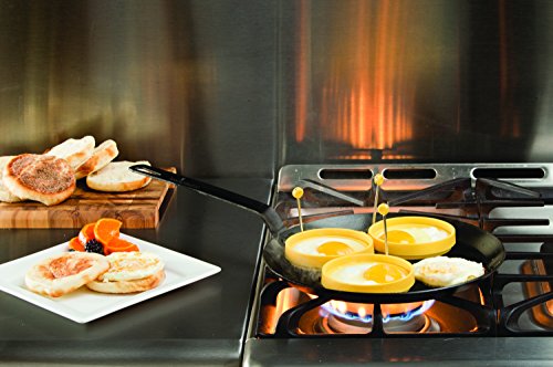 -. Feature : BREAKFAST: REFINED. This dynamic combo pairs a pre-seasoned and ready to use 12-inch Cast Iron Skillet with a 4-inch Silicone Egg Ring to take your breakfast up a notch and jumpstart to your day. / EGG THEM ON. This silicone egg ring is perfect for breakfast sandwiches, delicious pancakes, or mini frittatas. Heat resistant up to 500º, it has an easy lift handle and is dishwasher safe for easy and convenient cleaning. / MADE IN THE USA. Lodge has been making cast iron cookware South Pittsburg, Tennessee (pop. 3,300) since 1896. With over 120 years of experience, their cast iron is known for its high quality design, lifetime durability, and cooking versatility. / PRE-SEASONED COOKWARE. A good seasoning makes all the difference. Lodge provides pre-seasoned cookware with no synthetic chemicals; just soy based vegetable oil. The more you use your iron, the better the seasoning becomes. / FAMILY-OWNED. Lodge is more than just a business; it's a family. The Lodge family founded the company in 1896, and they still own it today. From environmental responsibility to community development, their heads and hearts are rooted in America.